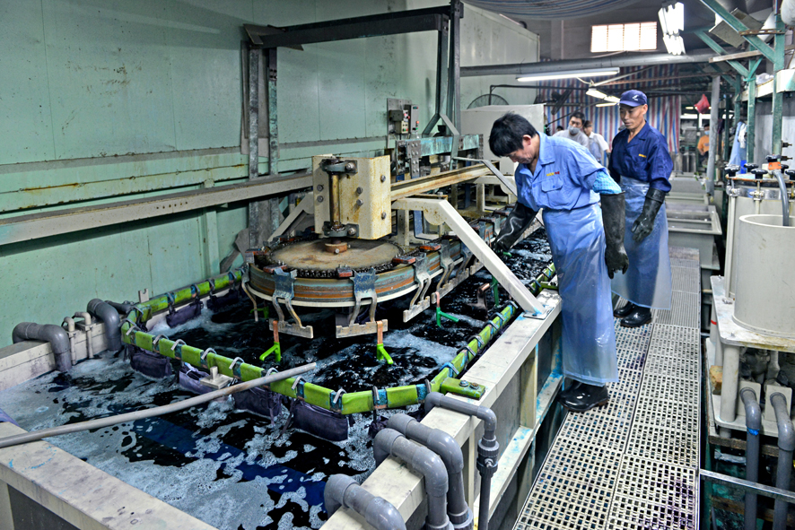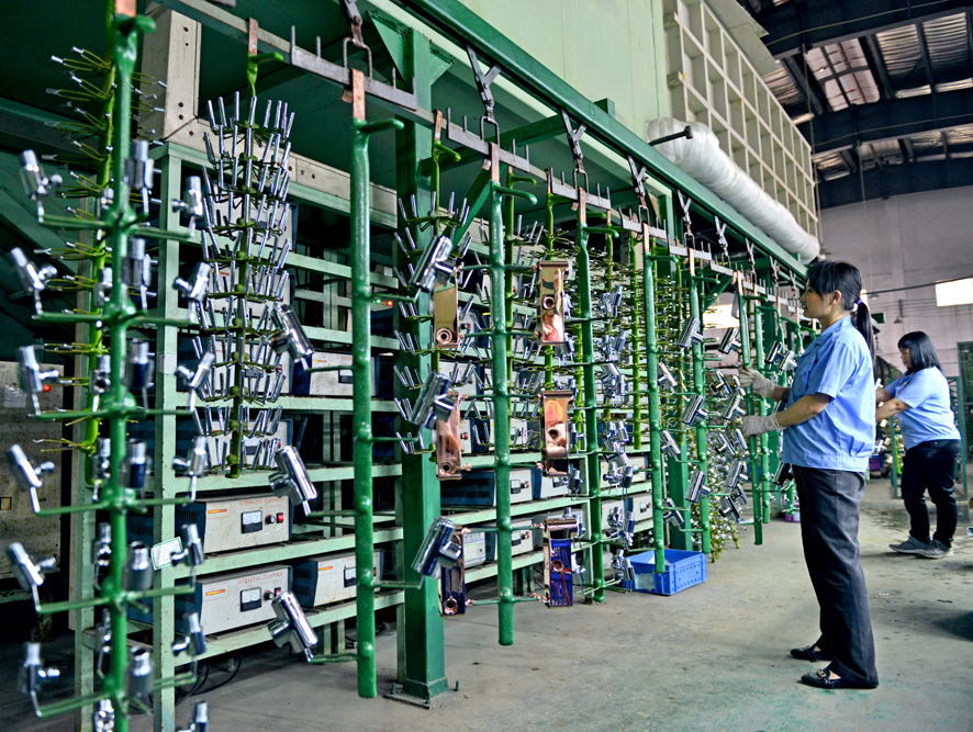如今偉強(qiáng)電鍍廠已擁有兩條全自動鋅合金電鍍線、三條全自動銅合金電鍍線,涵蓋水電鍍和真空電鍍(PVD),電鍍表面處理工藝達(dá)63種,以高標(biāo)準(zhǔn)的完整生產(chǎn)系統(tǒng),有力保證了偉強(qiáng)產(chǎn)品持續(xù)穩(wěn)定的優(yōu)異品質(zhì)。