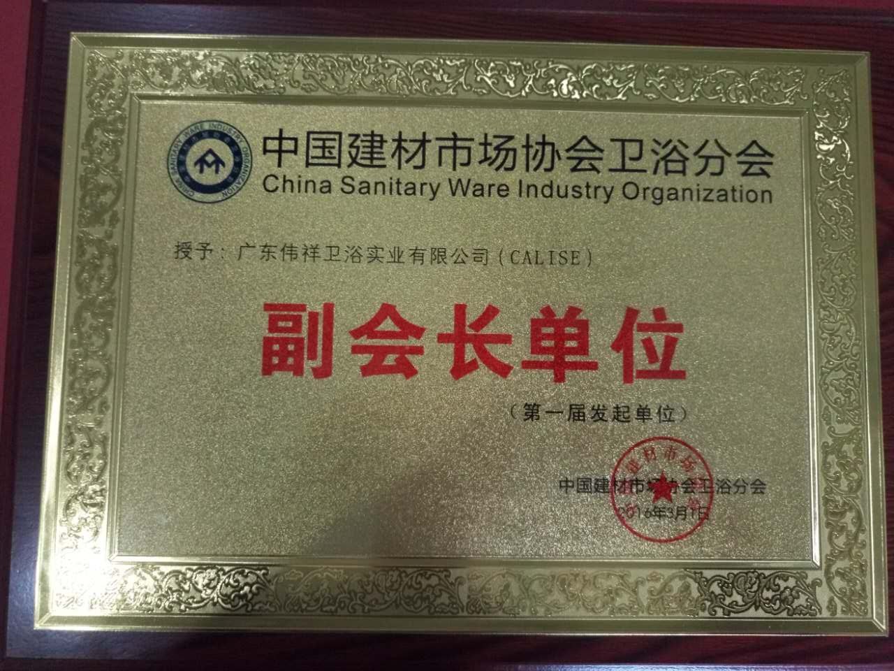 在中國建材市場協(xié)會衛(wèi)浴分會的成立大會上,廣東偉祥衛(wèi)浴實業(yè)有限公司榮獲“中國建材協(xié)會衛(wèi)浴分會副會長單位”稱號。